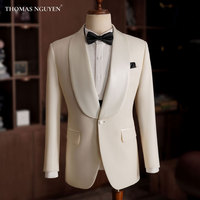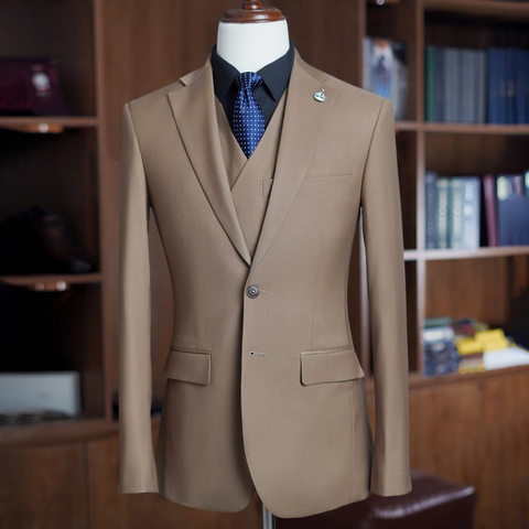 Vietnam Men's Luxury three-piece suit Tailored Tobacco Suit Jacket, Trousers and Waistcoat Natural Color Collection