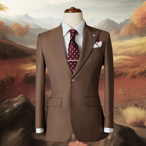 Men's Luxury Fashion Men's two-piece suit Tailored Earth Brown Suit Jacket and Trousers Natural Color Collection Made in Vietnam