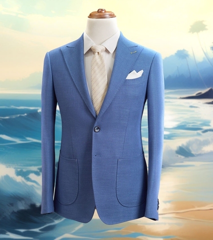 Men's Luxury Fashion Men's two-piece suit Tailored Beach Blue Suit Jacket and Trousers Natural Color Collection Made in Vietnam